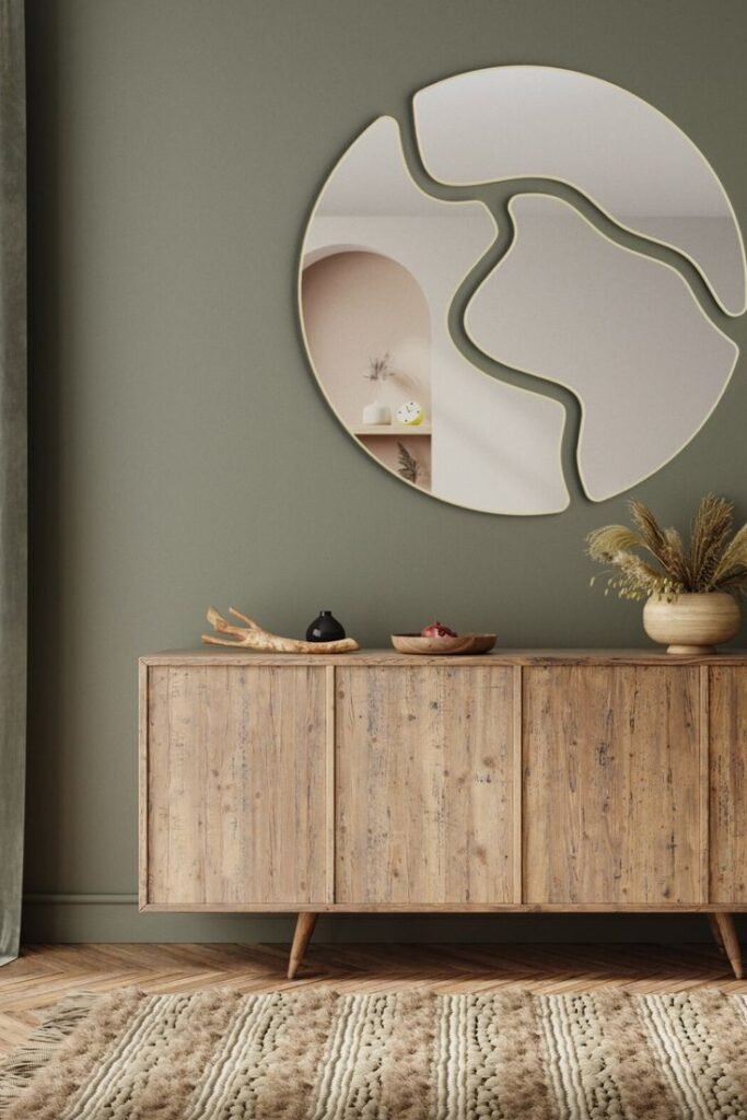 - إضافة لمسة فنية: يمكن اختيار مرايا بأشكال مبتكرة أو إطارات مزخرفة لتصبح قطعة ديكور محورية في الغرفة.