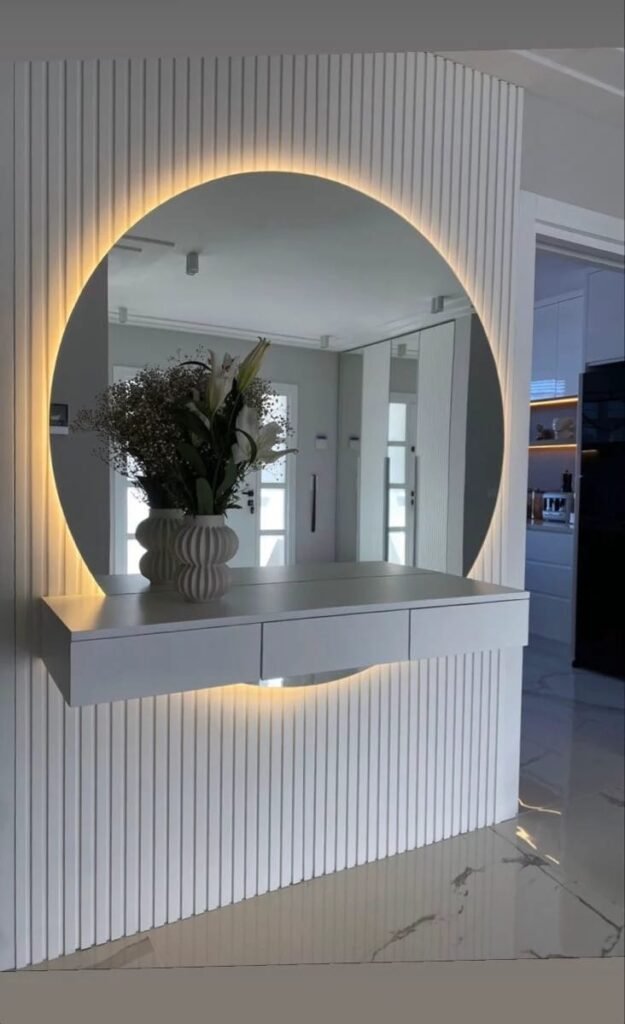 - زيادة اتساع الغرف: تعكس المرايا الضوء وتخلق إحساسًا بالفضاء، وهو مثالي للغرف الصغيرة والممرات الطويلة.