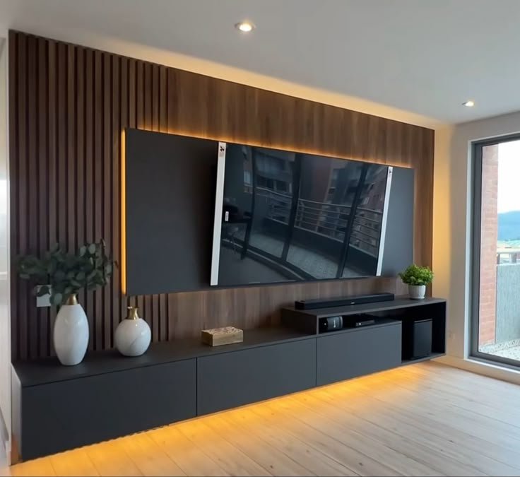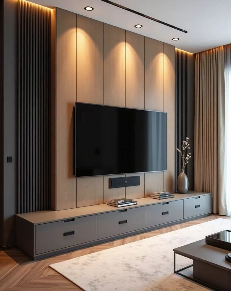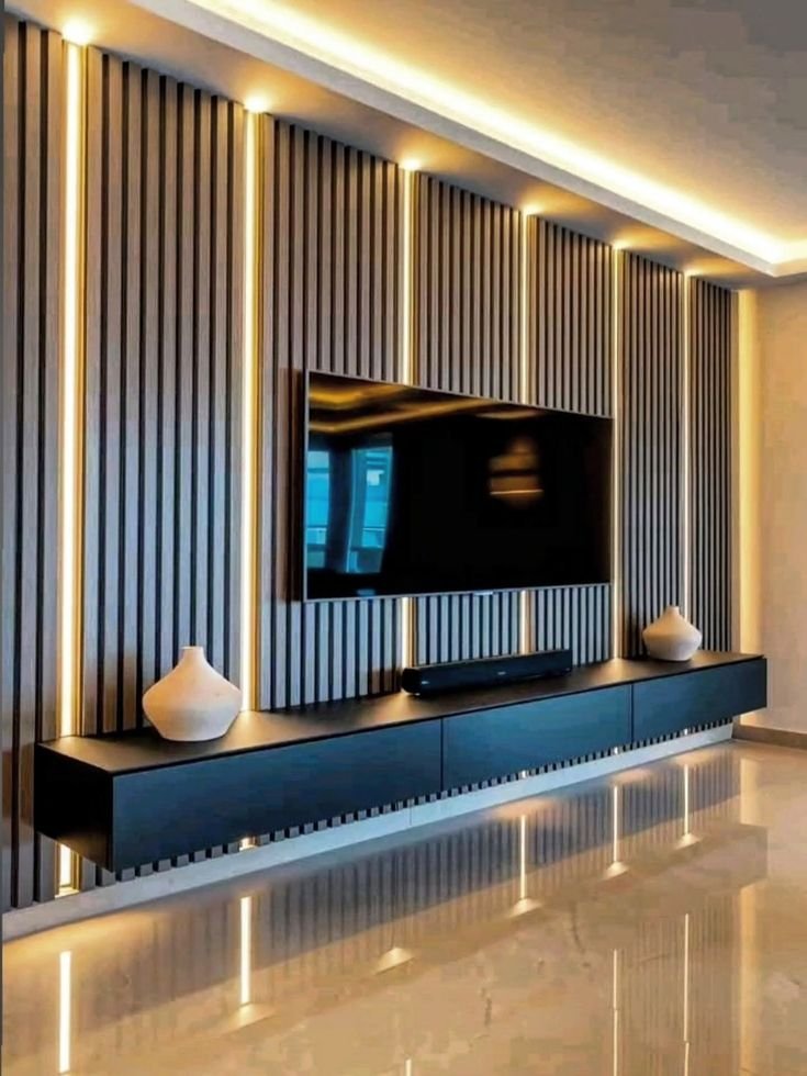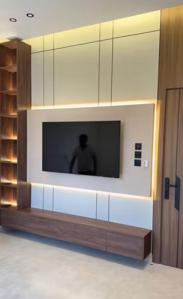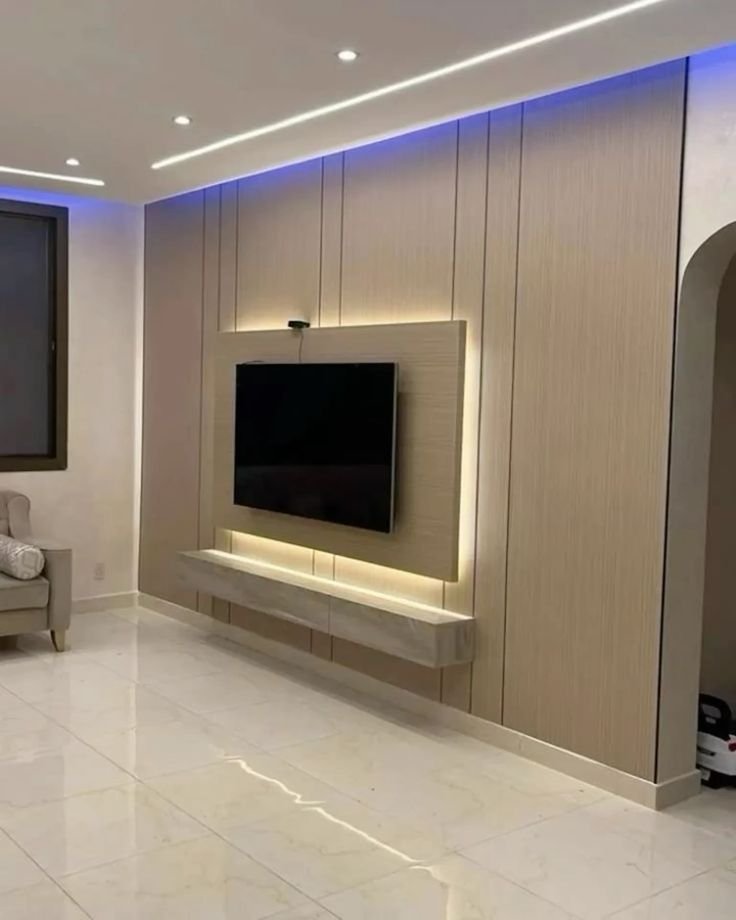 - يمكن دمجه مع إضاءة LED خفية لإبراز الشاشة وإضفاء أجواء راقية.