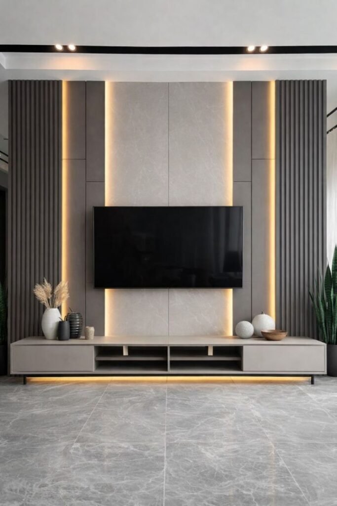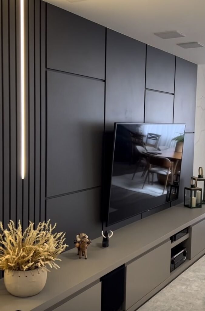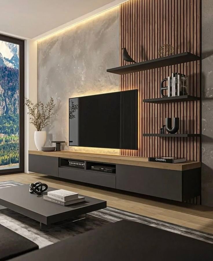 كما أن طبيعة التصاميم الحديثة أصبحت تعتمد بشكل كبير على إبراز الجدار الرئيسي داخل الغرفة، وغالبًا ما يكون جدار الشاشة هو النقطة البصرية الأهم، لذلك أصبح الاهتمام بتصميمه أمرًا ضروريًا في أي ديكور داخلي حديث.