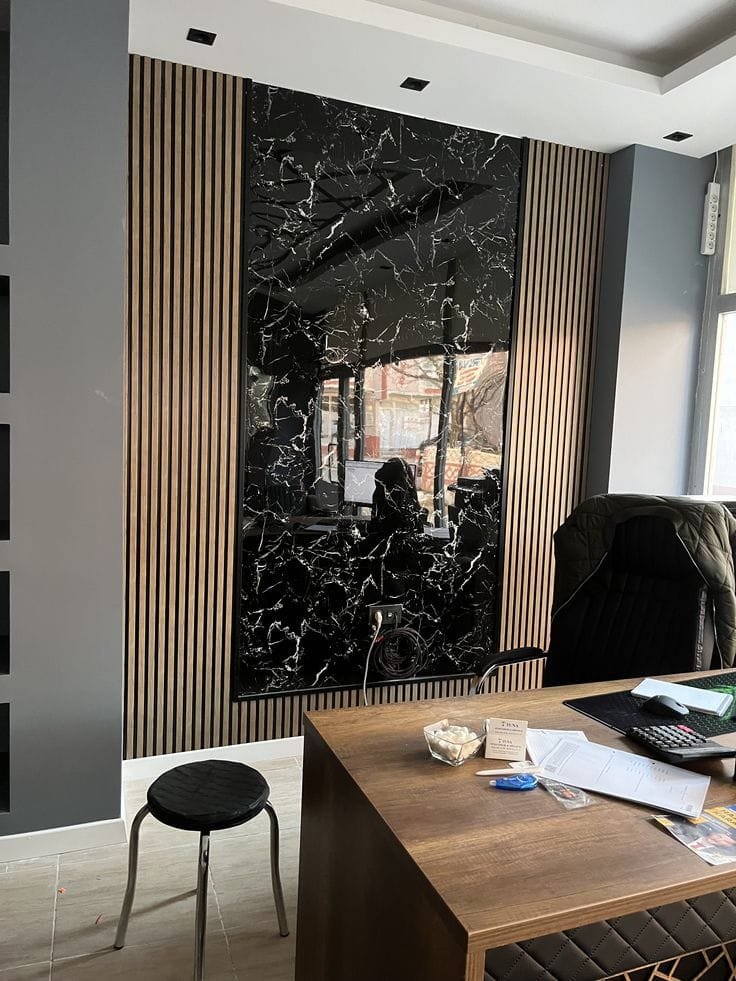 ألواح بديل الرخام خفيفة الوزن، مما يقلل الأحمال على جدران المبنى. كما تتوفر بتصاميم لا حصر لها، من “العروق الرمادية” الكلاسيكية إلى “الأسود الماركينا” الفخم والـ “أوبالين” المضيء.